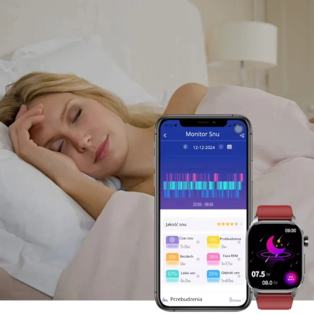 Dzięki zaawansowanym algorytmom smartwatch potrafi wykrywać zakłócenia snu, takie jak częste przebudzenia czy problemy z oddychaniem, co może pomóc w identyfikacji potencjalnych problemów, takich jak bezdech senny.