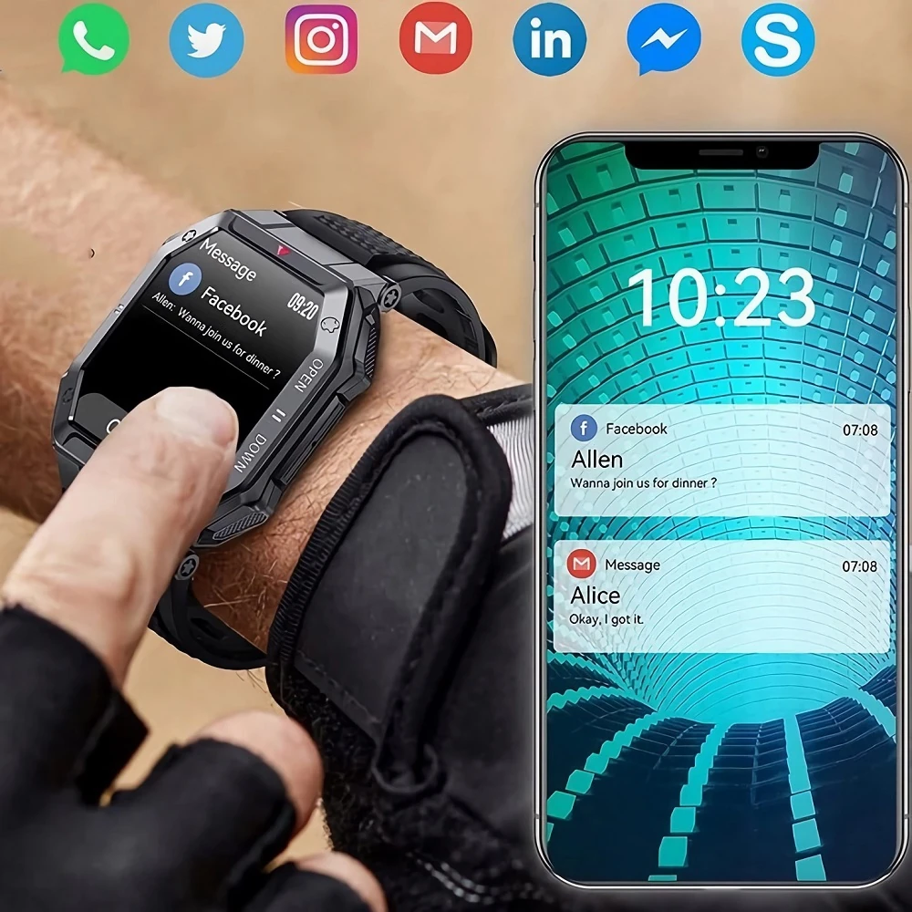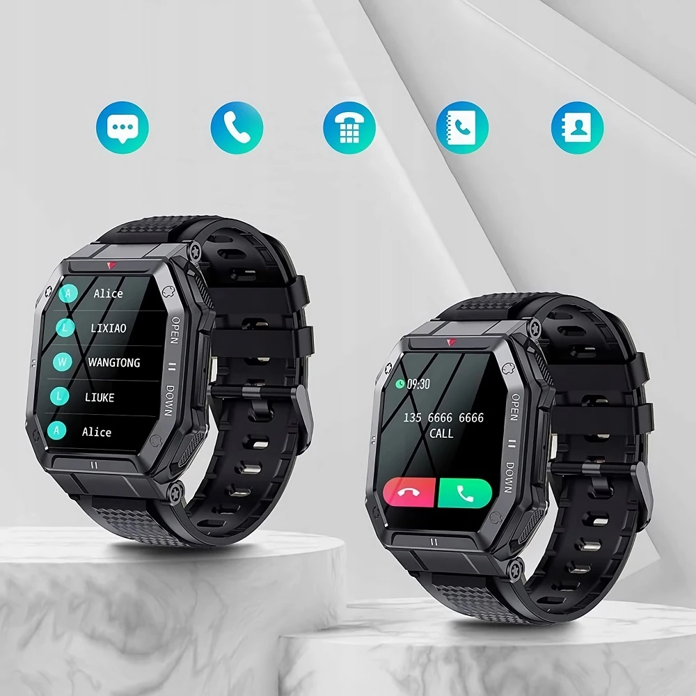 Inteligentny męski zegarek posiada wbudowany wysokiej jakości głośnik oraz czuły mikrofon, dzięki czemu mamy możliwość prowadzenia rozmów.